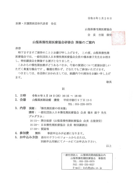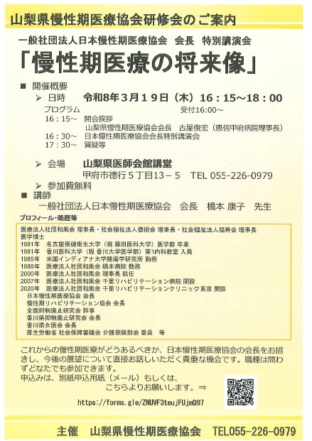 山梨県慢性期医療協会より研修会のお知らせがありました。